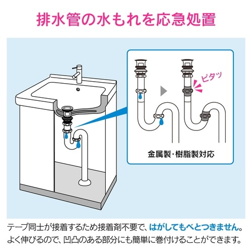 排水管の水もれを応急処置するシリコーンゴムテープです。 |
