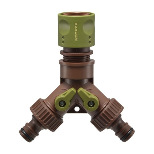 蛇口から散水ホースを2方向に分水してつなぐための三又ジョイントです。 |