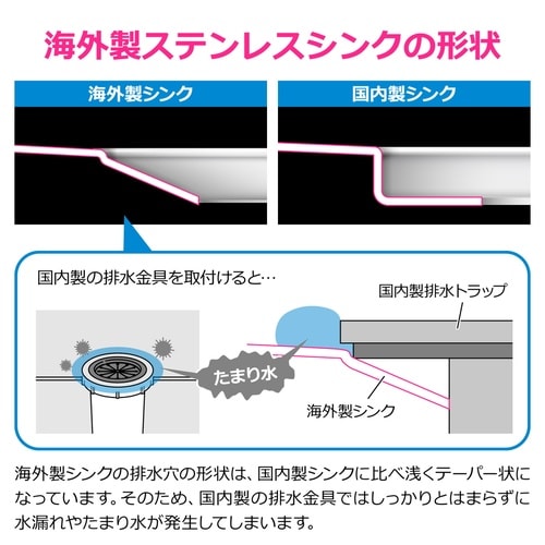 海外規格のステンレスシンクに設置できる排水栓です。 |