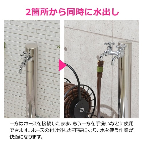 多用途使いに便利な屋外用のおしゃれな二口蛇口です。 |