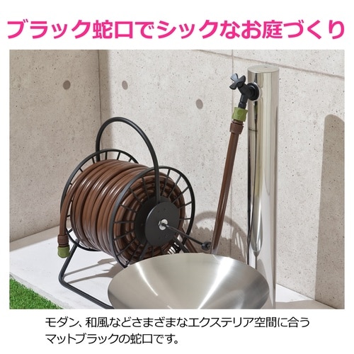 シックなお庭づくりにピッタリな屋外用マットブラック蛇口です。