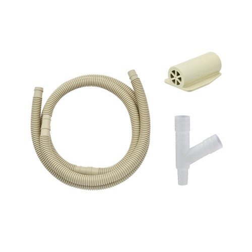 2本のドレンホースを1本にまとめるYジョイントと追加用のホース5m、防虫キャップのフルセットです。 |