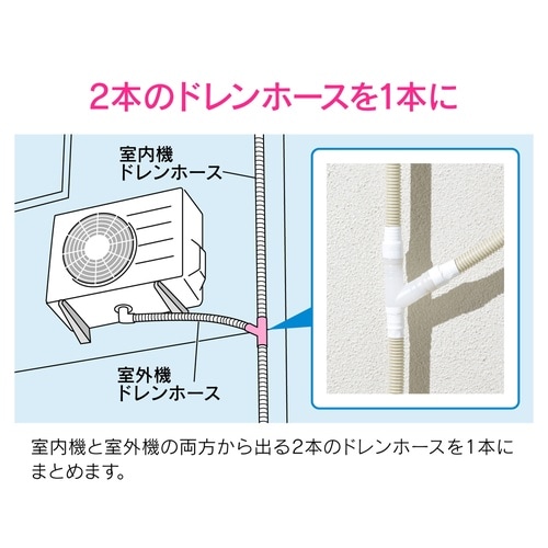 2本のドレンホースを1本にまとめるYジョイントと追加用のホース3m、防虫キャップのフルセットです。 |