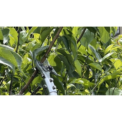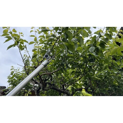 高所の枝を楽に剪定できる充電式高枝鋏。
