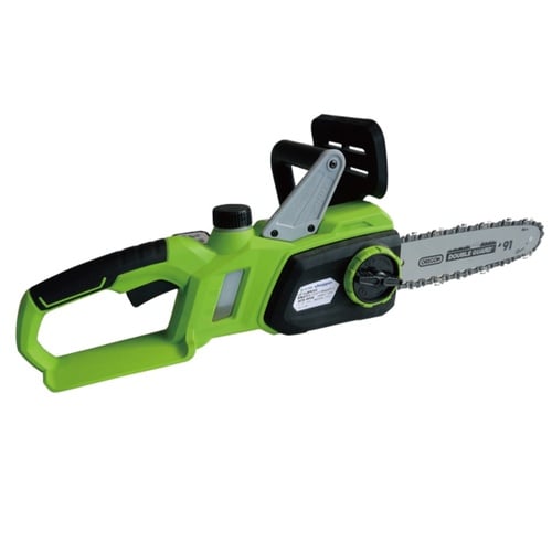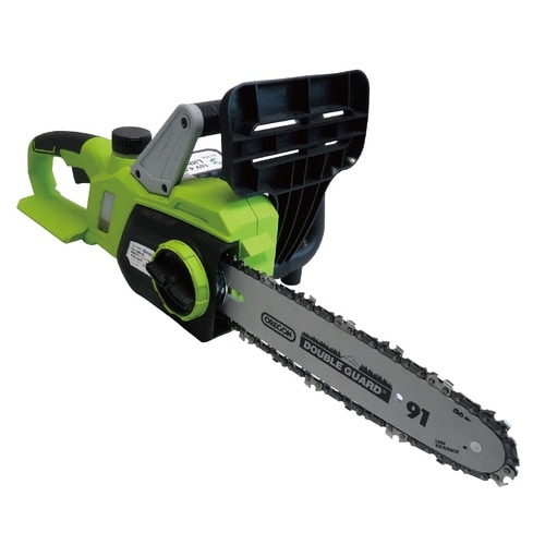 庭木の剪定・伐採・薪作り・材木のカットに便利なリチウム蓄電池式充電式チェーンソー。 |
