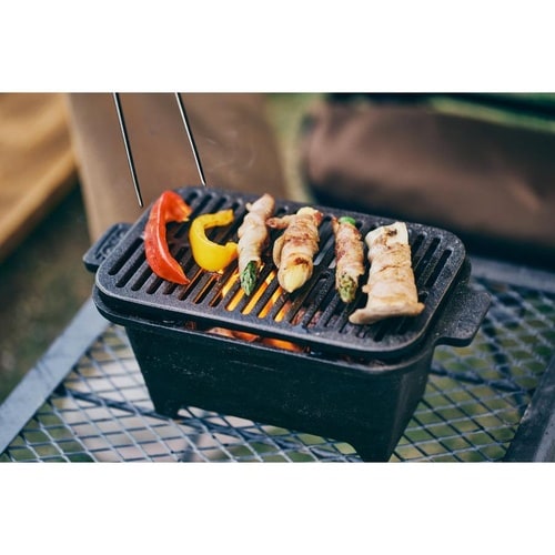 コンパクトな鋳物コンロ鋳物グリルで美味しく調理出来ます |