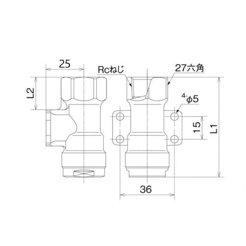 流路径が広く、流量が確保しやすい外径シール構造を採用。 |