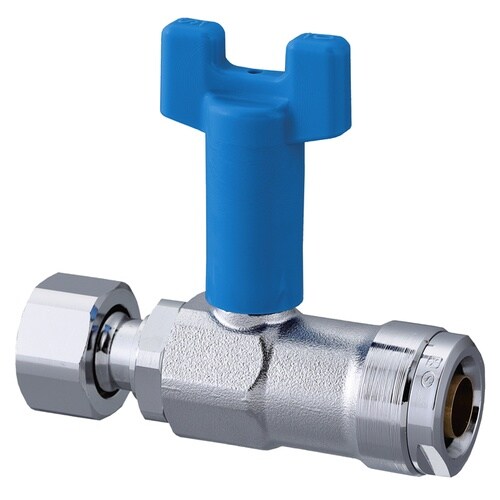 ボールバルブ内蔵の架橋ポリエチレン管用ワンタッチ継手。