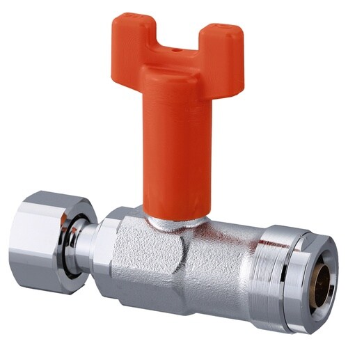 ボールバルブ内蔵の架橋ポリエチレン管用ワンタッチ継手。