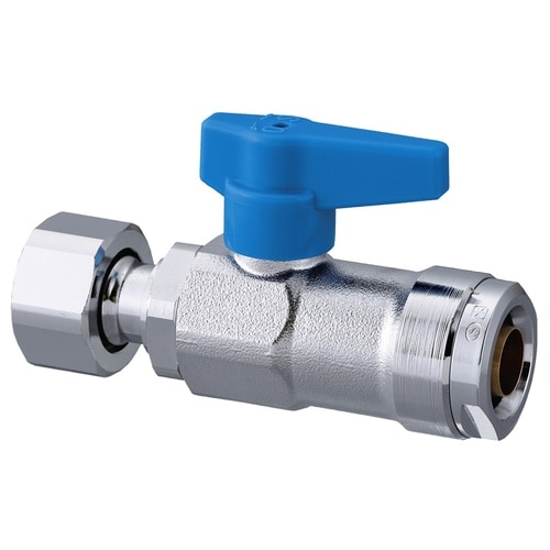 ボールバルブ内蔵の架橋ポリエチレン管用ワンタッチ継手。