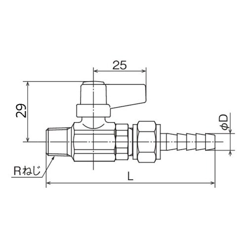 呼び径:R1/8×Φ6ホースニップル | 材質(本体):黄銅 | 使用温度範囲[℃]:−20ー80 | 最高許容圧力[MPa]:1 | 使用流体:冷温…
