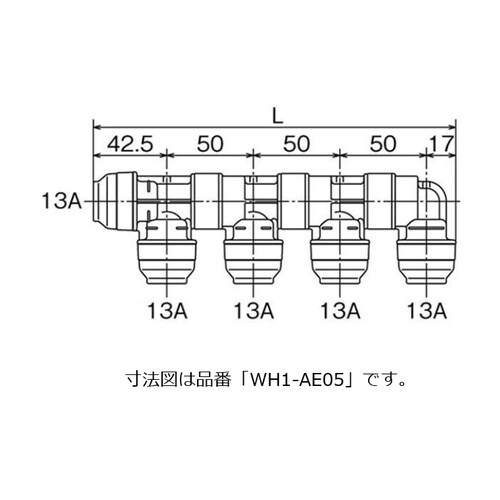 材質:PPS | 接続口数(樹脂管13A):6 | 連結数:5 | 使用温度範囲[℃]:−20ー95 | 最高許容圧力[MPa]:1.75 | 使用流…
