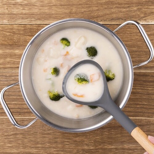 シリコーンで鍋底からしっかりこそいでよそうのが得意なレードル |