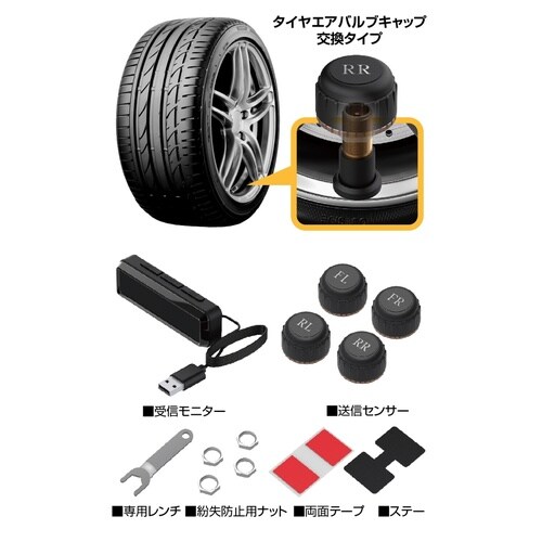 車内でタイヤの空気圧、温度をリアルタイムに表示。 |
