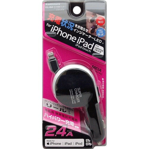 カシムラ DC充電器リール2.4ALNBK KL−82 充電池/充電器 1個 9104-4525
