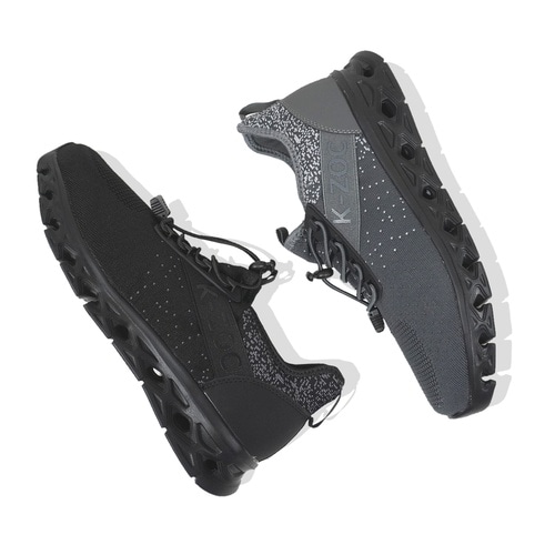 ニット素材で柔らかく、調整ができるゴム紐のついたシューズ。 |