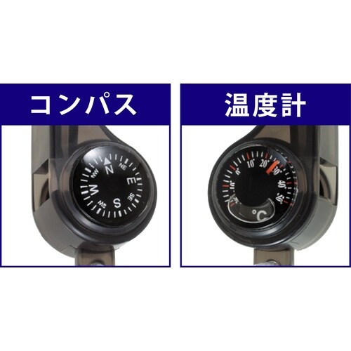 音が良く通る警笛にコンパスと温度計を付けました。 |