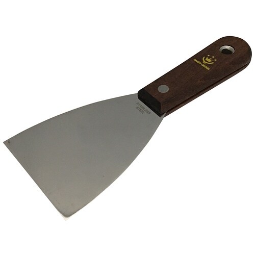 ステンレス製で錆びにくく、コシがなめらかな金ベラ。 |