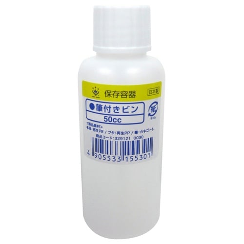 材質:本体/ポリエチレン、フタ/ポリプロピレン、筆/カネゴート | 規格:50cc | 重量:10g | 単位:1個