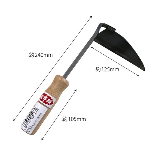 材質:刃部/スチール、柄部/天然木 | 重量(g):150 | 全長(mm):240 | 刃先幅(mm):125 | 柄部長さ(mm):105 | 単…