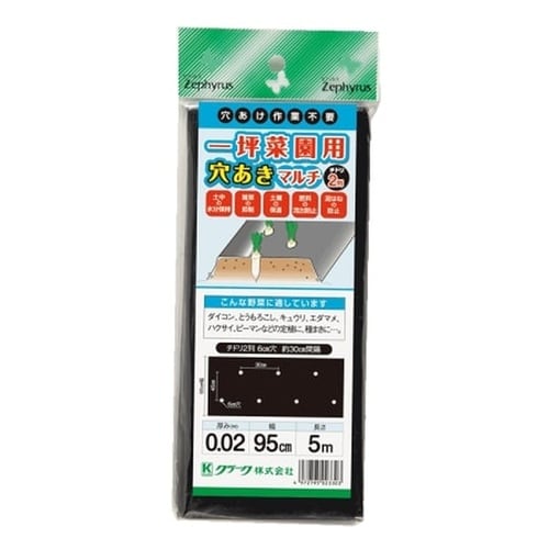 材質:ポリエチレン | カラー:ブラック | 内容量:0.95×5m | 間隔:約30cm | タイプ:穴あき | 穴径:6cm | 単位:1個