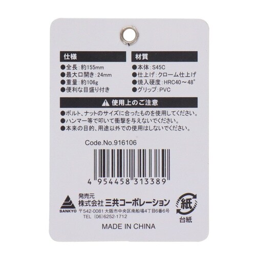 三共コーポレーション モンキーレンチ #916106 1個 9107-8087