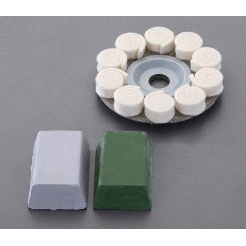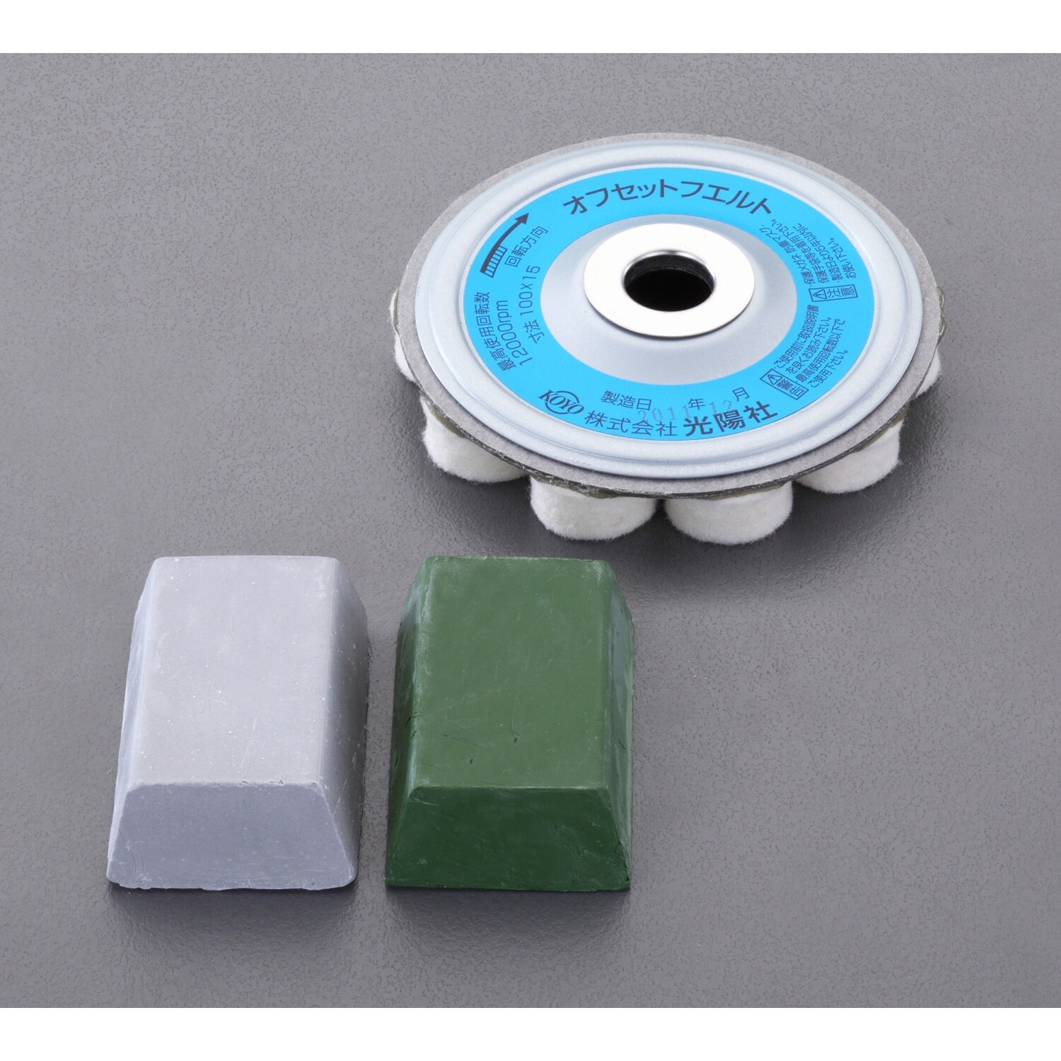 、  オフセットフェルト、  光沢仕上げ用バフ研磨剤(グレー) 、  超光沢仕上げ用バフ研磨剤(緑) 、  各1個