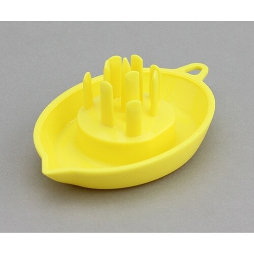 剣山状のしぼり構造で、回しながら押し込むだけです。少しの力でたっぷりの果汁が絞れます。主婦のアイデアから生まれました。 |