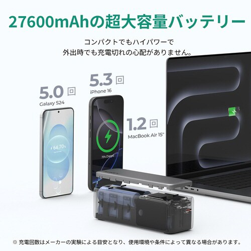 27600mAhの超大容量バッテリー。最大140Wの超高出力で急速充電が可能です |