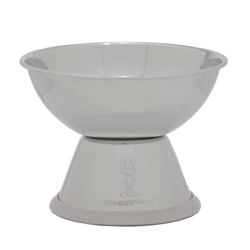 ステンレス製だから割れない!洗いやすい!衛生的な犬用背高食器。手前が低くて食べやすい。滑り止め付き。 |