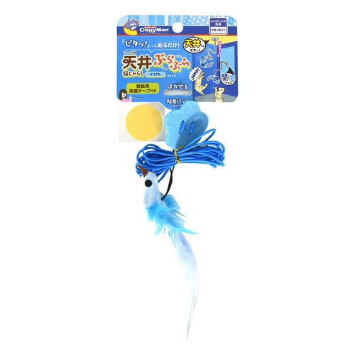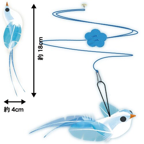 青いとりさんがお部屋を飛び回る!専用粘着パッドでお部屋の壁や窓、天井に取りつけて吊るす猫じゃらし。 |