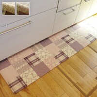 イケヒコ PVC フラン キッチンマット 拭ける お掃除ロボ対応 すべりにくい 薄手 耐圧分散 北欧風 カントリー調 ベージュ 約45×120cm 1枚【メーカー直送/軒先もしくは車上渡し】 【9195-1229】