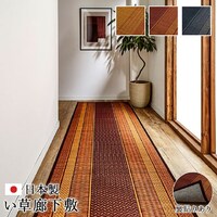 現代のライフスタイルに合う、洗練されたモダンなデザインの廊下敷きです。国産(九州産)のい草を使用しています。一本一本が太く、表皮が厚く繊維がキメ細かいので弾力性があり、耐久性に優れています。 |