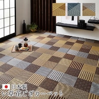 いろいろな織りを組み合わせたパッチワーク風のい草カーペットです。織り方によって違う複数の肌感触をお楽しみ頂けます。落ち着いた色目でモダンな雰囲気に仕上げました。国産(九州産)のい草を使用しています。 |
