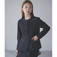 | 商品の特徴 | 開閉しやすい前ファスナー開き仕様のソフトジャケット。胸元のボウタイ風デザインもアクセントに。 |