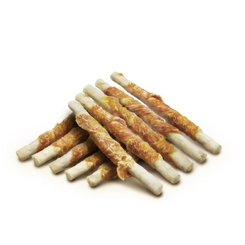 噛みごたえのある牛皮ガムにササミを巻いたガムスナック。 |