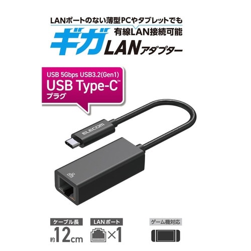 有線LANアダプター USB Type−C 1000Mbps 高速通信 USB3.2 Gen1ブラック