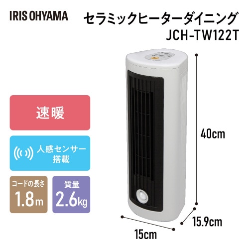 ヒーター 足元 デスク下 人感センサー付 セラミックヒーター ダイニング JCH−TW122T−W ホワイト