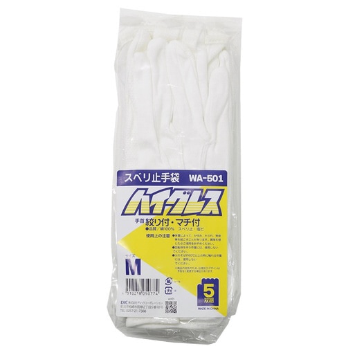 滑り止め付きで軽作業などにマチ付き、手首絞り付き |