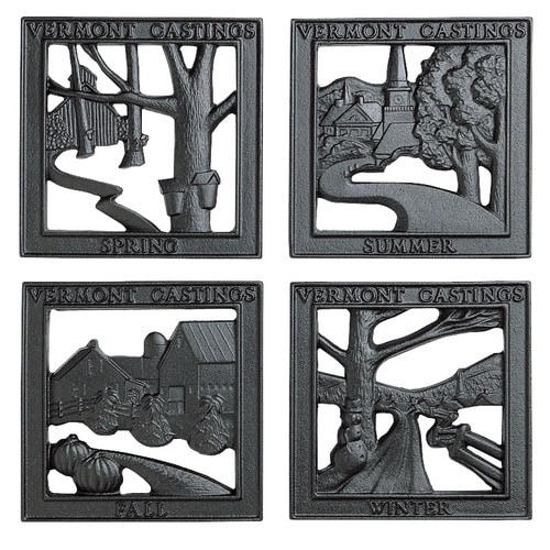 バーモント州の四季が描かれた鋳物製のトリベット。 |