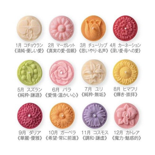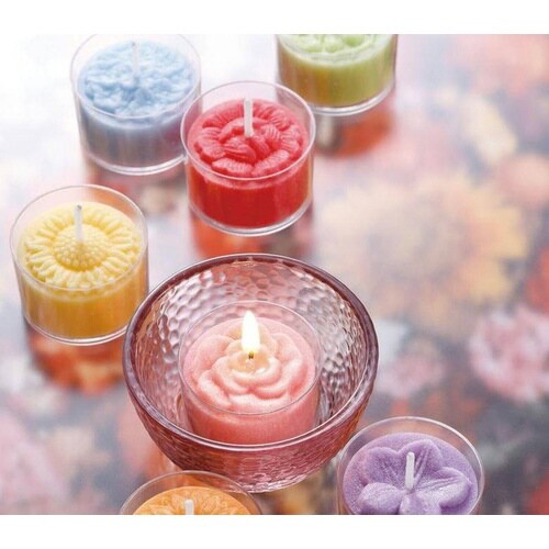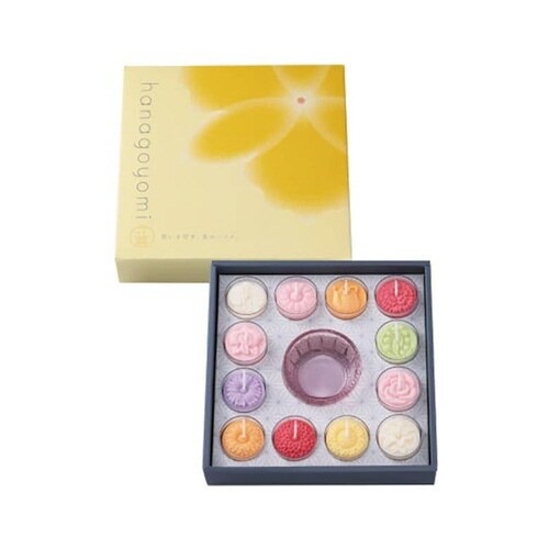 仕様:無香料 | セット内容:カップ付花ローソク 12個(1から12月の洋花)、あかりの器(ガラス製)1個 | 燃焼時間:約4時間 | 単位:1個