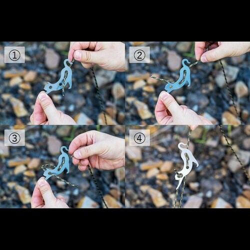 本製品はテントやタープ等のロープの長さやテンションを調整する自在金具です。 |