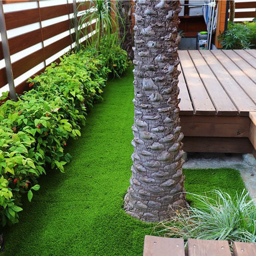 お庭やベランダなど、広い場所にも敷きやすいタイプの人工芝です。 |