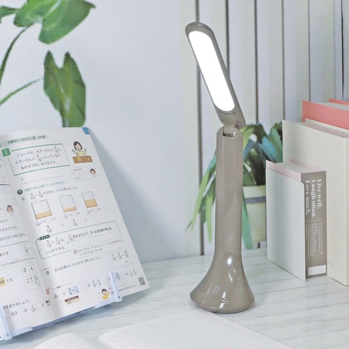 省スペースで明るく学べる!目に優しい昼白色(LED、3段階調光)。USB充電式。コンパクト(直径9cm、折りたたみ式)。USB(Type−C)ケーブル付。取扱説明書・保証書付。