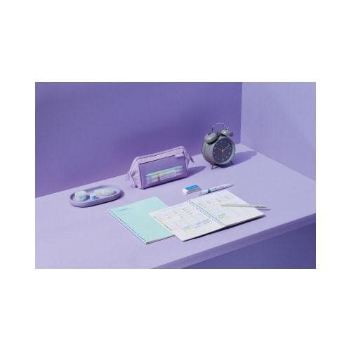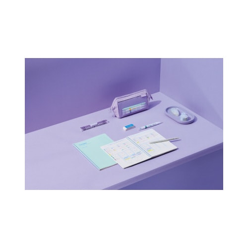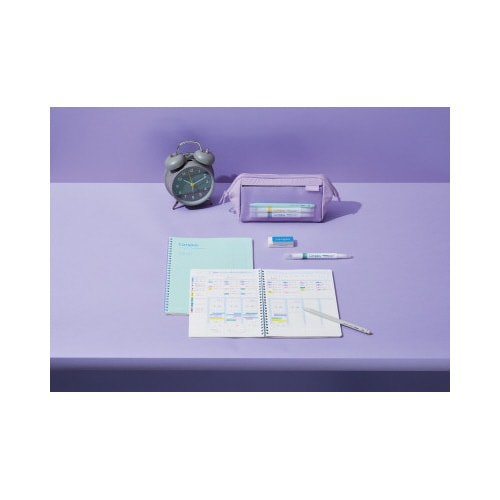 長期的な目標を意識して日々の計画を立てられるソフトリングダイアリータイプのスタディプランナー。いつからでも始められる日付フリータイプ。折り返せるので狭い場所にも置ける。 |