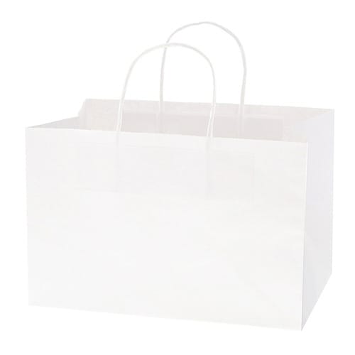 横長が特徴的でマチと高さが同サイズの白無地紙袋です。洋菓子、和菓子、土産、弁当など幅広い需要に! |