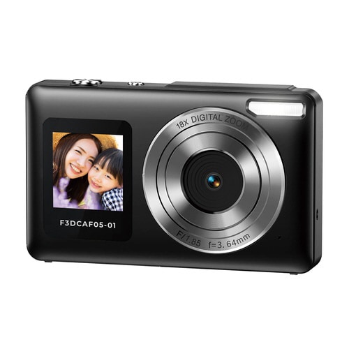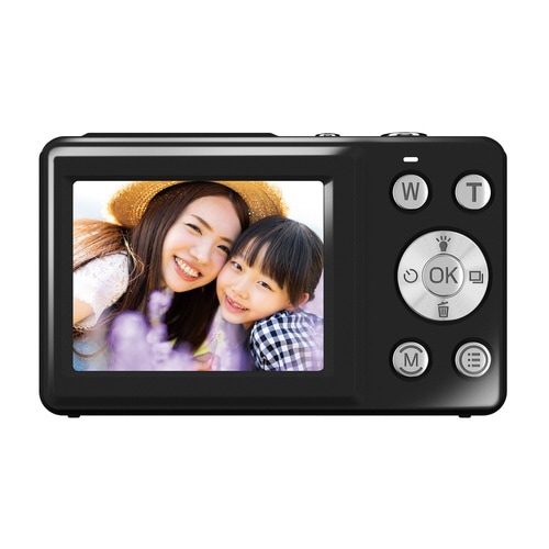自撮りに便利!前面モニター搭載。約500万画素/18倍デジタルズーム。フルHD動画撮影。約100gの軽量モデル。 |