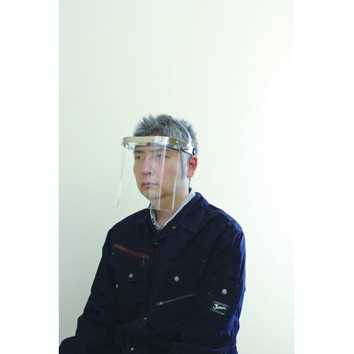 手軽にすばやく装着できる直かぶりタイプ。後頭部のあたりが柔らかいゴムバンド式防災面。正面が平らな角型レンズ。 |
