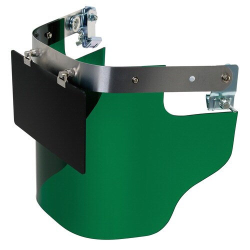 野球帽型ヘルメットに直接取付可能な大型防災面。917シリーズのW用プレート付です。正面が平らな角型レンズ。