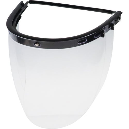 様々なヘルメットに取付可能なアルミフレーム製防災面。後部のバンドと前部の溝でほとんどのヘルメットに取り付可能。熱に強いアルミ製枠。ポリカーボネート、遮光、金属メッシュなど5種のレンズから選べます。